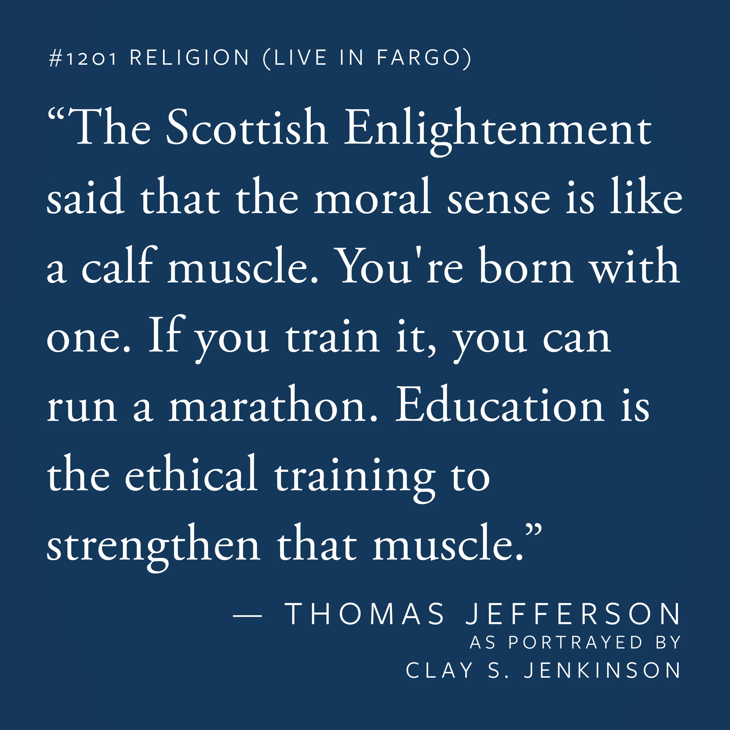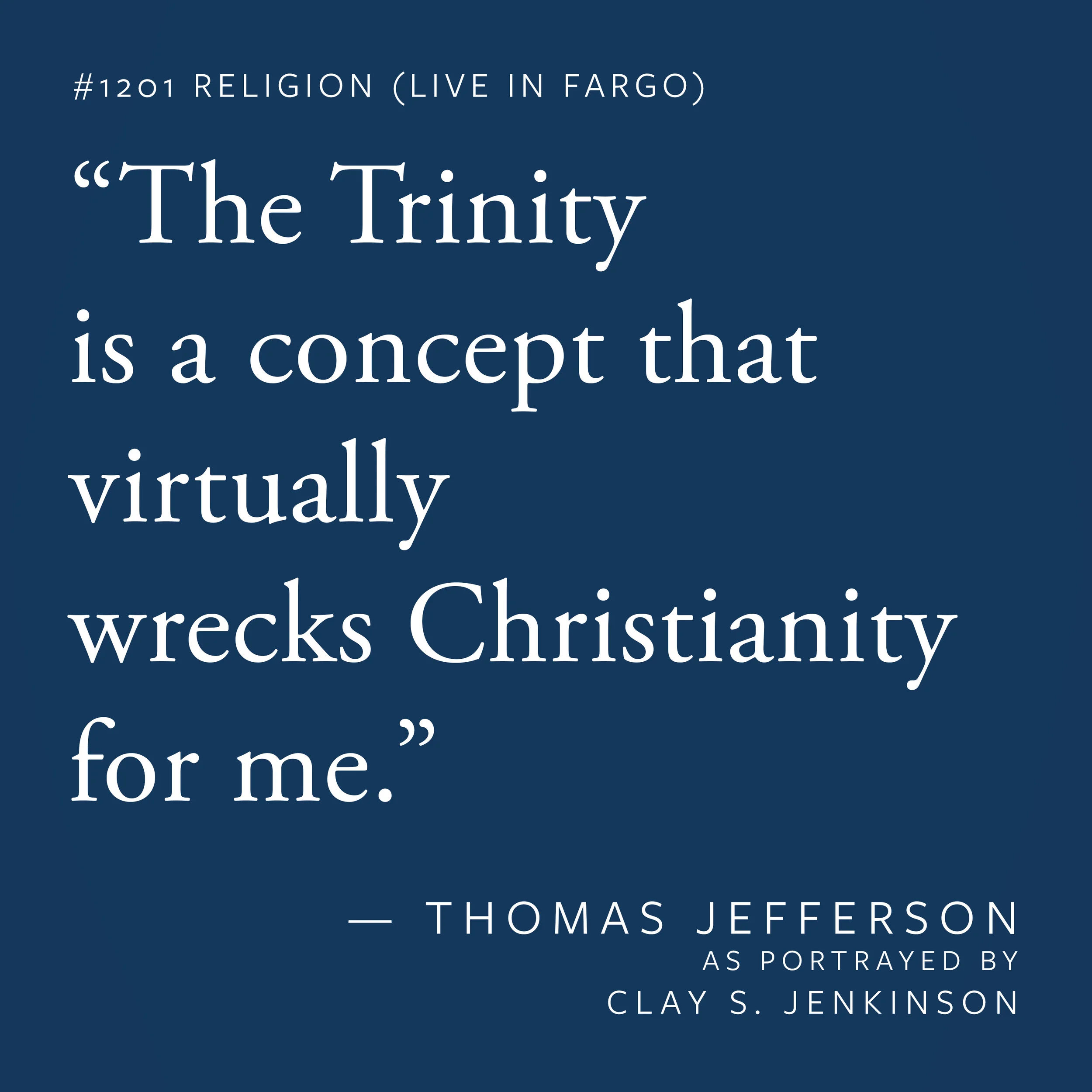 Clay & David recap Clay's performances at the Fargo Theatre in Fargo, ND with guest host Bill Thomas of Prairie Public Radio. The two shows, taped in front of a live audience, will be broadcast in the upcoming weeks. The first is on the subject of religion. On this 1776 Club episode, Clay & David tackle one of the most-discussed questions on this topic: was Thomas Jefferson a Christian? Find out on the blog.