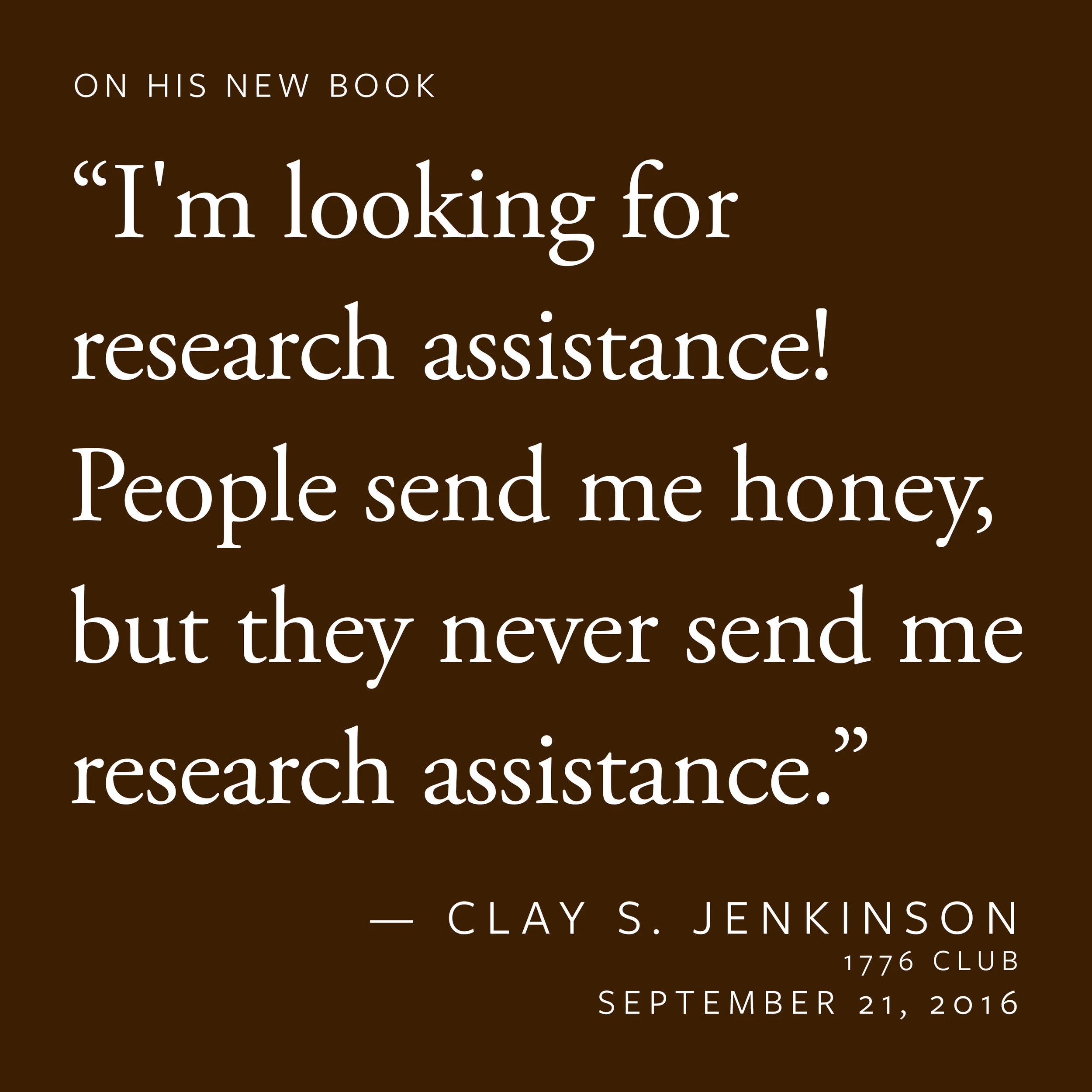 From the way he's talking in this 1776 Club broadcast, it sounds like Clay needs some help with his new book! He's been hard at word in the kitchen, up to his ears in honey, glazing ham, roasting carrots, sweetening tea... and now his hands are so sticky with honey that he can hardly turn a page without ruining his research materials! #justscholarlythings